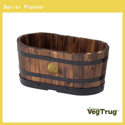 Wood Barrel Planter Na (Rounded Trough)