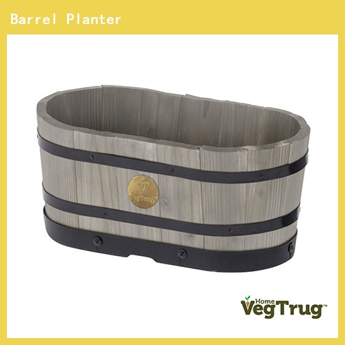 Wood Barrel Planter Grey (Rounded Trough)